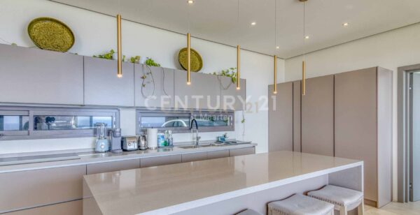 The luxurious fixtures and fittings which are imported from around the world, are a perfect complement to the sleek modern and streamlined character of large open spacious living and handsomely appointed kitchen area becoming one, which opens to a large terrace overlooking the Caribbean Sea.