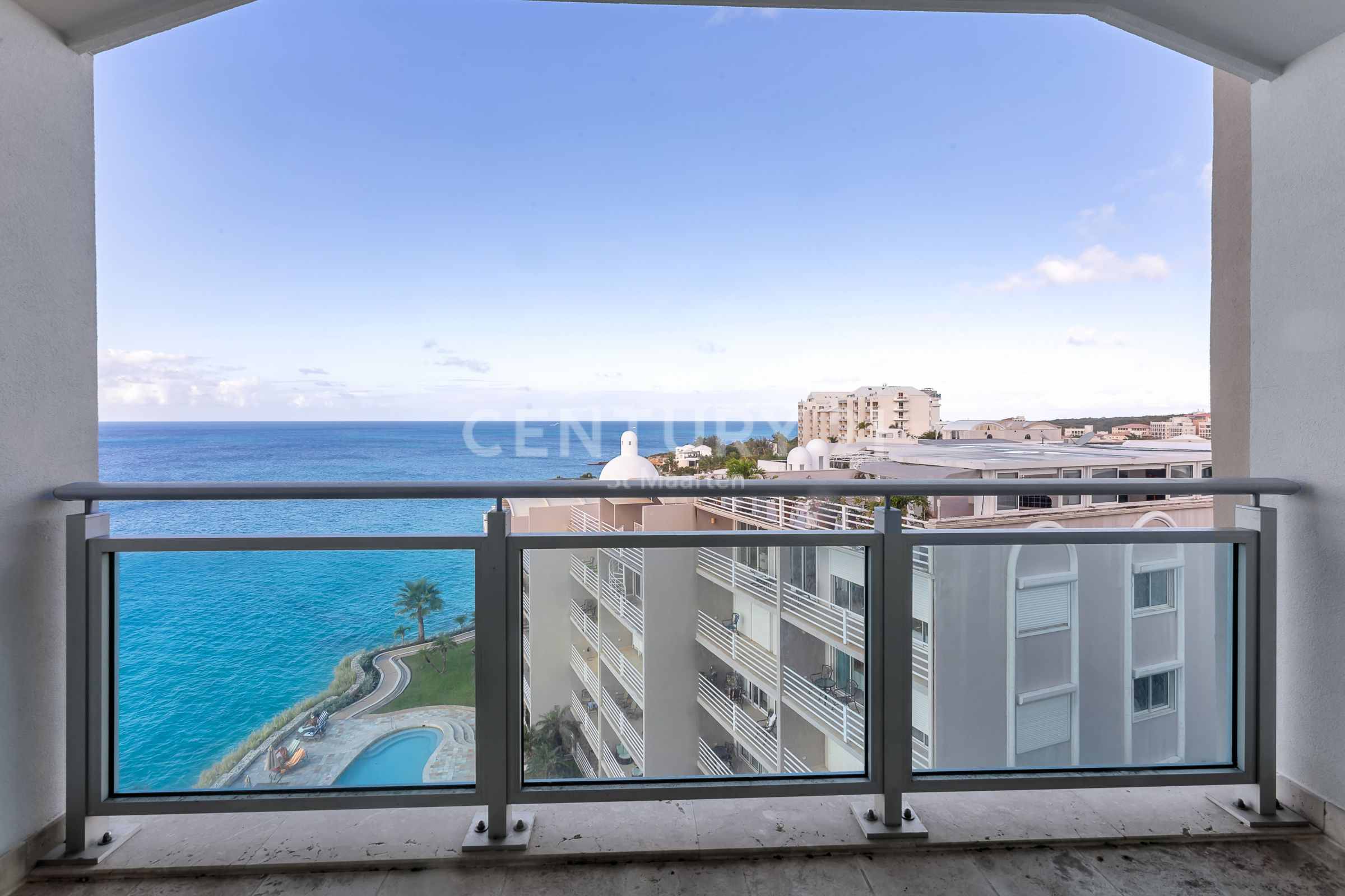 This two-bedroom, two-bathroom condo is located at The Cliff with the best ocean views in the building!! The Cliff offers world class luxury amenities including a pool made with lapis lazuli tiles! This is the best in Sint Maarten! The Cliff condo is situated on the fifth floor, offering breathtaking views of the Caribbean Sea and the surrounding islands.